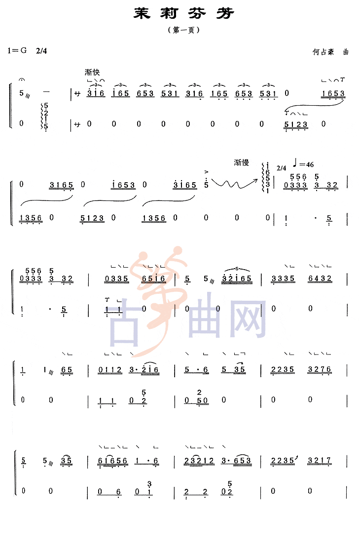 上海音乐学院考级筝谱《茉莉芬芳》(九级)